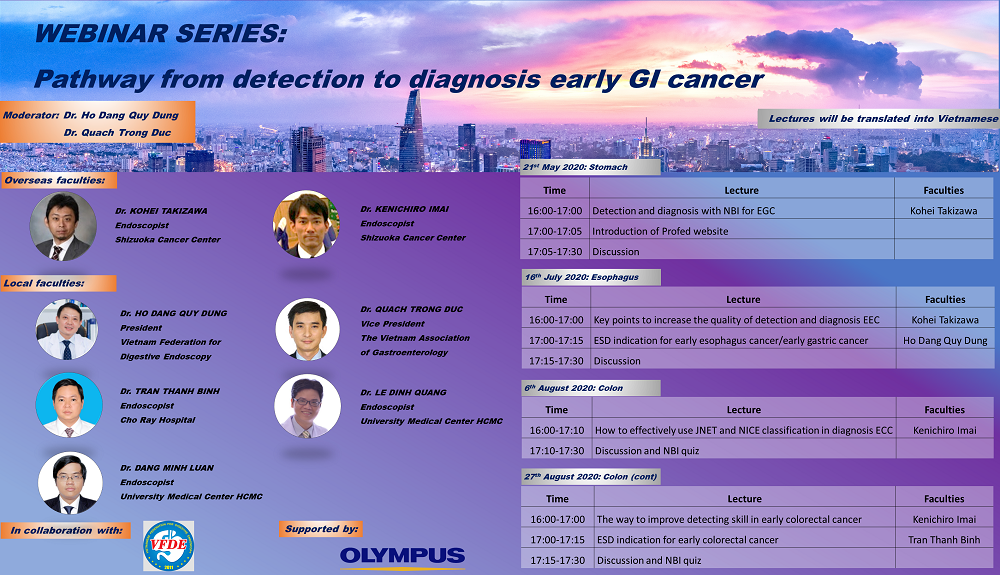 VFDE kính mời Quý đồng nghiệp tham gia Hội thảo trực tuyến chủ đề: Pathway from detection to diagnosis early GI cancer, diễn ra vào Thứ Năm ngày 16/07/2020.