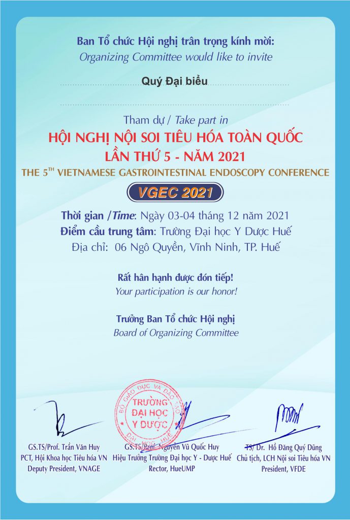 GIẤY MỜI HỘI NGHỊ NỘI SOI TIÊU HÓA TOÀN QUỐC LẦN THỨ 5- VGEC 2021