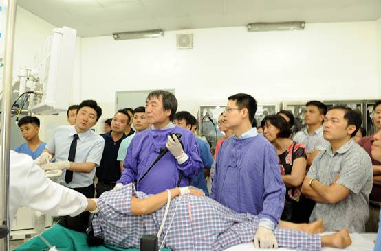 GS.TS Mitsuhiro Kida đang hướng dẫn học viên thực hành nội soi siêu âm