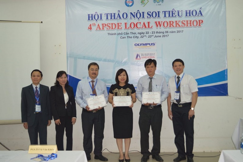 Trong 2 ngày 22-23/06/2017 vừa qua, Liên chi hội Nội soi Tiêu Hóa Việt Nam (VFDE) đã kết hợp với Hội Nội soi Tiêu hóa Châu Á Thái Bình Dương (APSDE) và Bệnh viện đa khoa Trung Ương Cần Thơ tổ chức thành công Hội Thảo Nội soi Tiêu hóa/ 4th APSDE Local Workshop on Colonoscopy, ERCP and EUS. Mục tiêu của Hội thảo lần này nhằm nâng cao kỹ năng cho các bác sỹ/ điều dưỡng ở các trung tâm nội soi trong cả nước về ERCP, EUS và nội soi đại trực tràng. Đồng thời, chia sẻ các kinh nghiệm trong tầm soát, chẩn đoán và điều trị nội soi các bệnh lý đại trực tràng, ERCP và EUS.