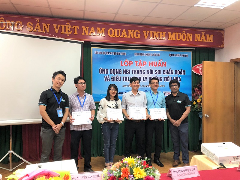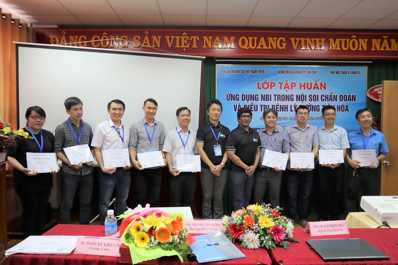 Kết thúc lớp tập huấn, Hội ANBIIG và đại diện bệnh viện đa khoa thành phố Cần Thơ đã tiến hành trao giấy chứng nhận và chụp hình lưu niệm cùng với các học viên tham dự. VFDE hi vọng lớp tập huấn lần này đã mang đến cơ hội giao lưu cũng như học tập, tích lũy kiến thức và kinh nghiệm cho các bác sĩ nội soi trong nước.