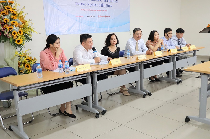 Bên cạnh đó, các báo cáo viên cũng chia sẽ các kinh nghiệm, quy trình, quy định và điều kiện thực tế của các bệnh viện mình đang công tác, qua đó trao đổi, thảo luận các câu hỏi có liên quan đến quy trình làm sạch, khử khuẩn và tiệt khuẩn trong nội soi tiêu hóa. Các báo cáo viên cũng chia sẽ các quy trình chuẩn bị bệnh nhân thực hiện nội soi siêu âm/ EMR, chuẩn bị bệnh nhân sàng lọc để chẩn đoán ung thư dạ dày sớm và vai trò của simethicone trong nội soi dạ dày- quy trình chuẩn bị nội soi dạ dày.
