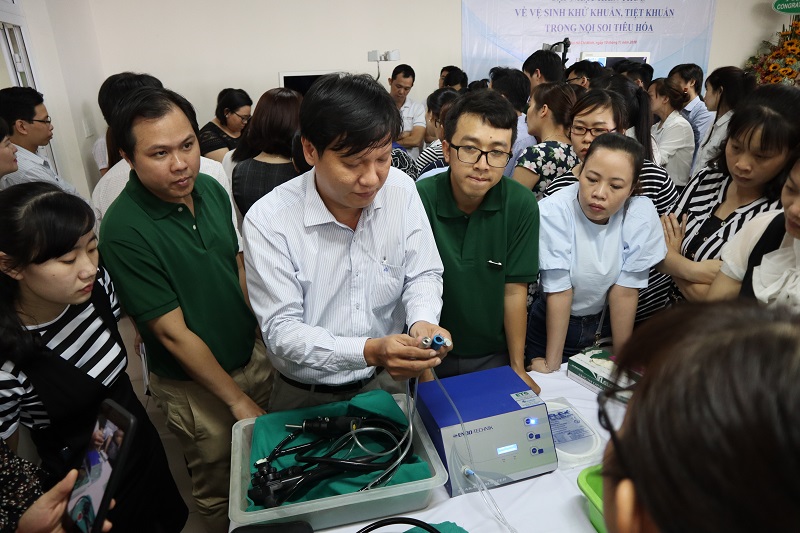 Trong ngày 10/11/2018 Liên Chi Hội Nội Soi Tiêu Hóa Việt Nam (VFDE) đã kết hợp với bệnh viện Chợ Rẫy TP.HCM tổ chức lớp tập huấn với nội dung cập nhật các kiến thức về vệ sinh khử khuẩn, tiệt khuẩn trong nội soi tiêu hóa- một chủ đề đang rất được quan tâm hiện nay. Lớp tập huấn vinh dự sự có mặt của PGS. Lê Thị Anh Thư-Chủ tịch hội kiểm soát nhiễm khuẩn Thành Phố Hồ Chí Minh, TS.BS. Hồ Đăng Quý Dũng- Chủ tịch VFDE cùng các báo viên đến từ Bệnh viện Chợ Rẫy, Đại học y Hà Nội, Bệnh viện Việt Đức- Hà Nội, Bệnh viện Đại Học Y Dược Huế, Bệnh viện Bạch Mai cùng hơn 130 học viên là điều dưỡng đến từ các bệnh viện và trung tâm y tế trên khắp cả nước.