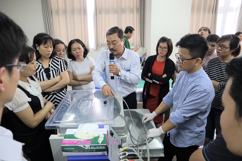 Các học viên tham gia thực hành cùng với sự hướng dẫn của các báo cáo viên trong buổi chiều cùng ngày