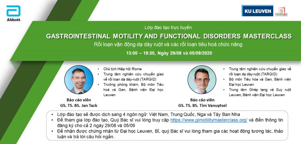 ?Lớp đào tạo trực tuyến chuyên đề: “Gastrointestinal motility and functional disorders Masterclass”, được tổ chức tại đại học Katholieke Universiteit Leuven, Bỉ bởi Trung tâm TARGID.